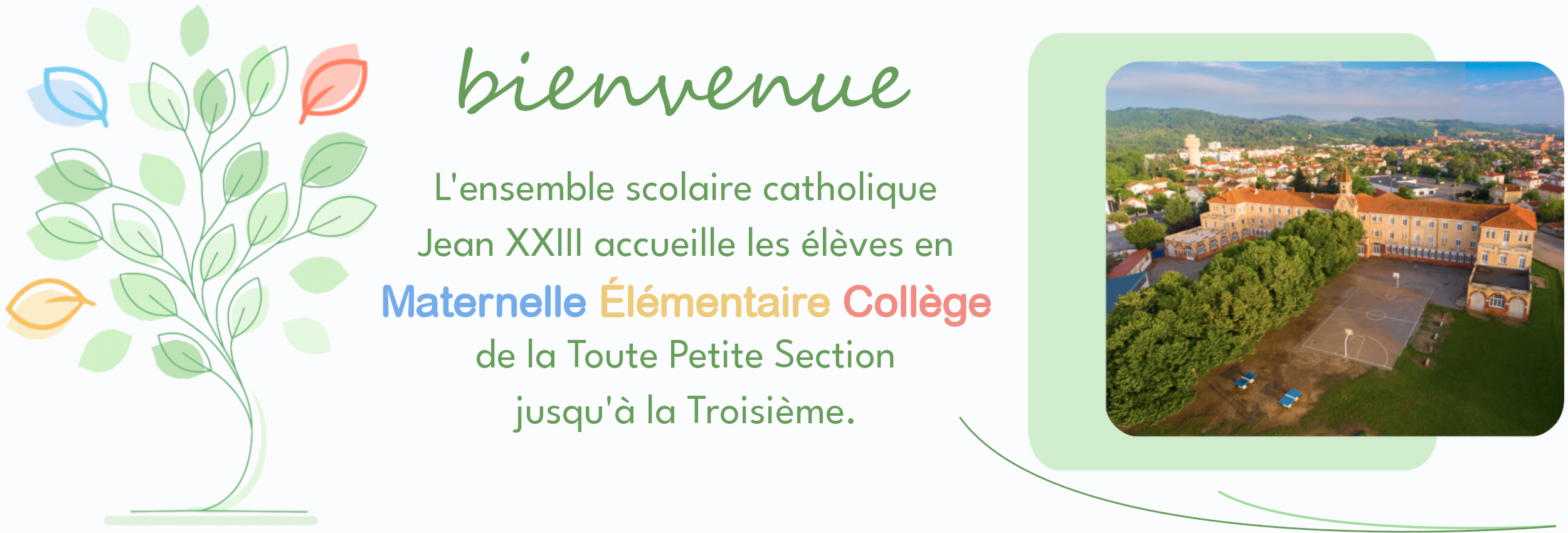 L'ensemble scolaire catholique Jean XXIII à Pamiers accueille les élèves en MATERNELLE, PRIMAIRE et COLLÈGE, de la Toute Petite Section jusqu'à la 3e.